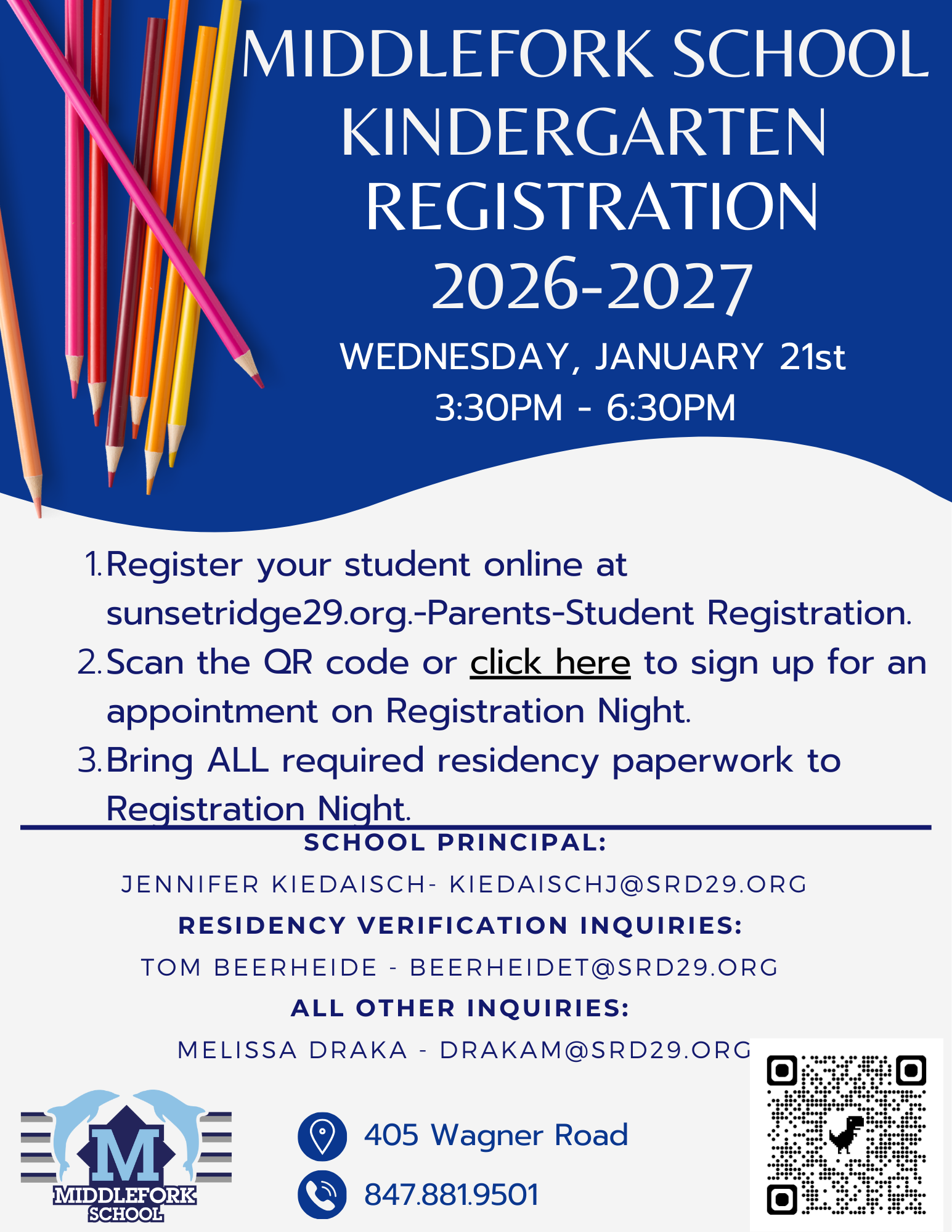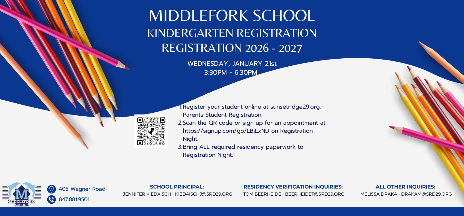 Click the link to book your appointment for the Middlefork School Kindergarten Registration NightFor more info on the registration process click on Kinder Registration